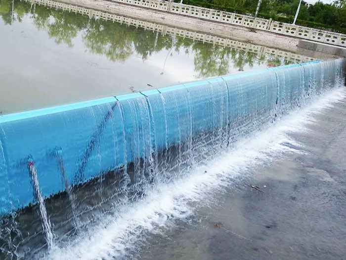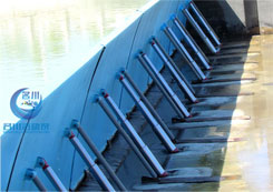 橡膠壩使用壽命短(橡膠壩采用的是再生橡膠原料,壩袋易老化,容易被上游漂浮物或尖銳物損壞,從而降低使用壽命);運行管理難度大(洪水過后一旦壩面淤積較厚,要求人工清理,否則壩袋不能正常升起蓄水,增加了后期的人工費用)。充水式橡膠壩冬季冰凍容易損壞壩袋,而充氣式橡膠壩不能調節(jié)壩高。