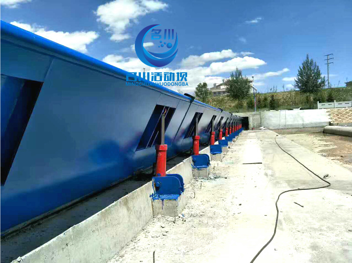 液壓壩既能達到橡膠壩能升能降的效果,又克服了橡膠壩安全性、可靠性、耐久性較差的缺點,使用壽命是橡膠壩的五倍以上,壩體以底部為軸,無中墩設計,放倒壩面后緊貼河床,排沙排漂效果好,再大的洪水都不會沖毀壩體,液壓活動壩面操作簡單方便,升降壩面速度快。